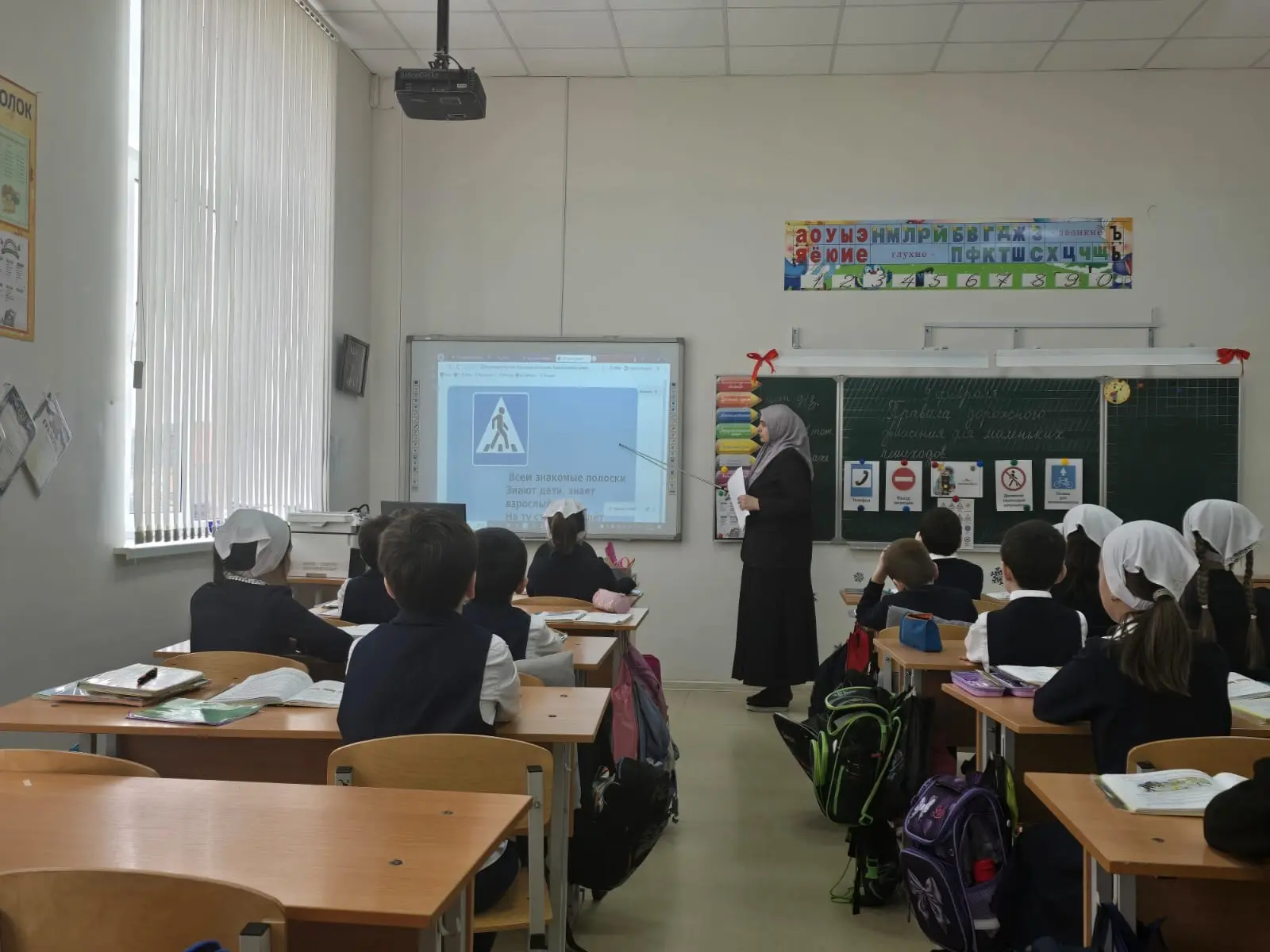 15.09.2025 в МБОУ "НОШ пос. Набережный "Учитель начальных классов Решиева Зульфия Зайндиевна провела урок на тему " О важности соблюдения ПДД"