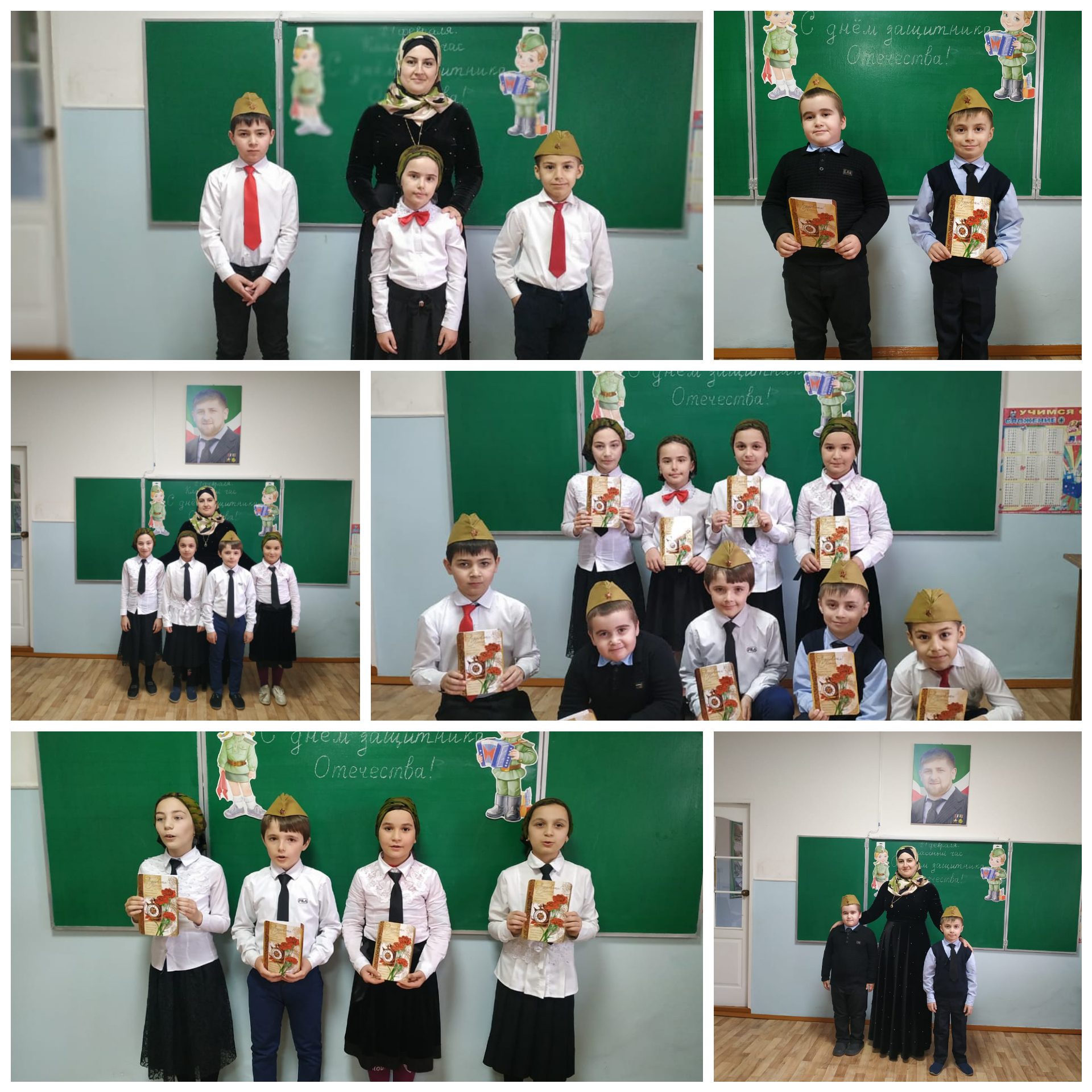22.02.2020Учащиеся МБОУ "НОШ пос. Набережный" 22 февраля 2020 года провели мероприятие, посвященное Дню защитника Отечества. Ребята читали стихи, пели песни. Узнали много интересного о жизни и деятельности первого президента Чеченской Республики А. Кадырове, о сыне и Герое чеченского народа, Герое Российской Федерации.