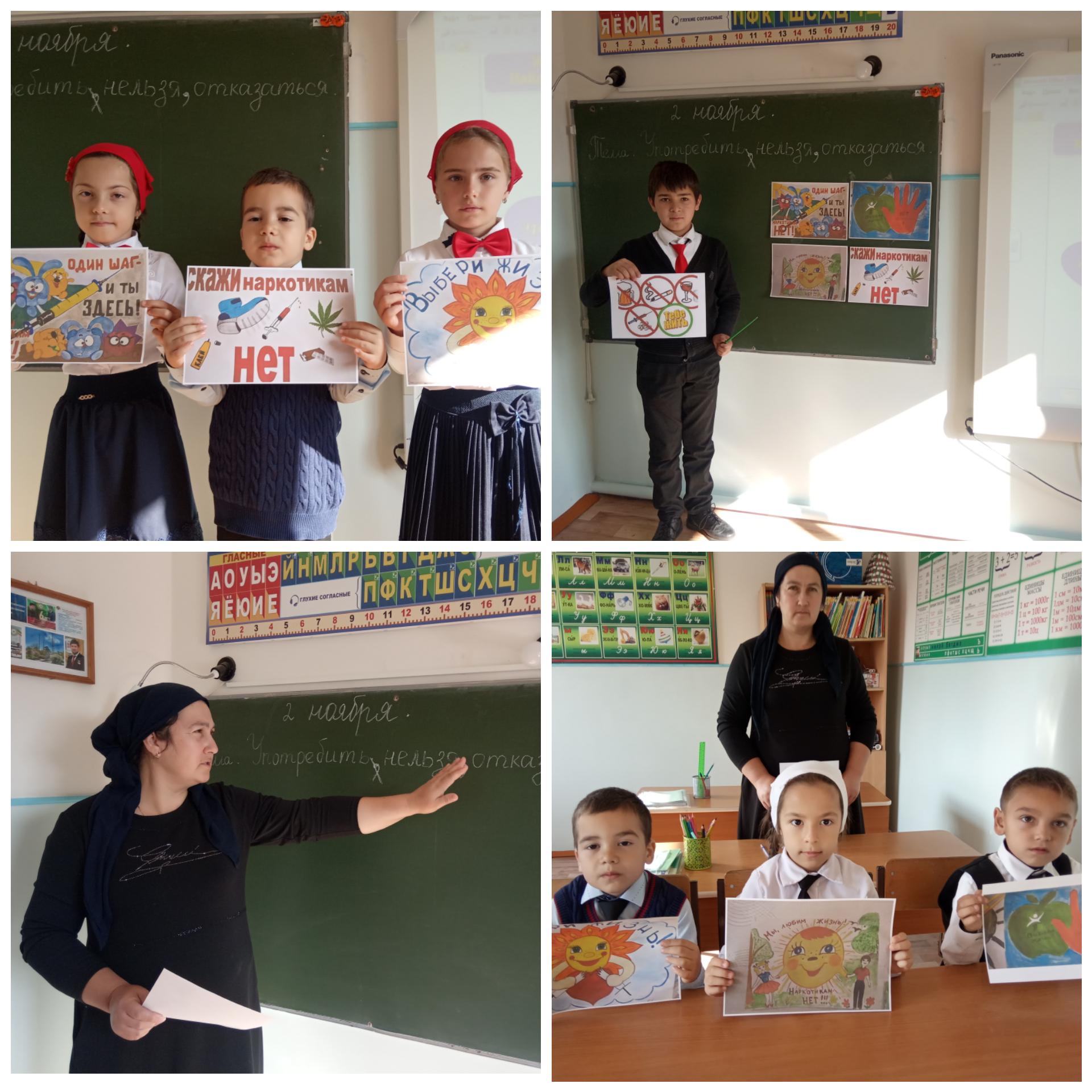Учитель начальных классов Решиева Зульфия Зайндиевна провела кл.час на тему "Употребить нельзя, отказаться".