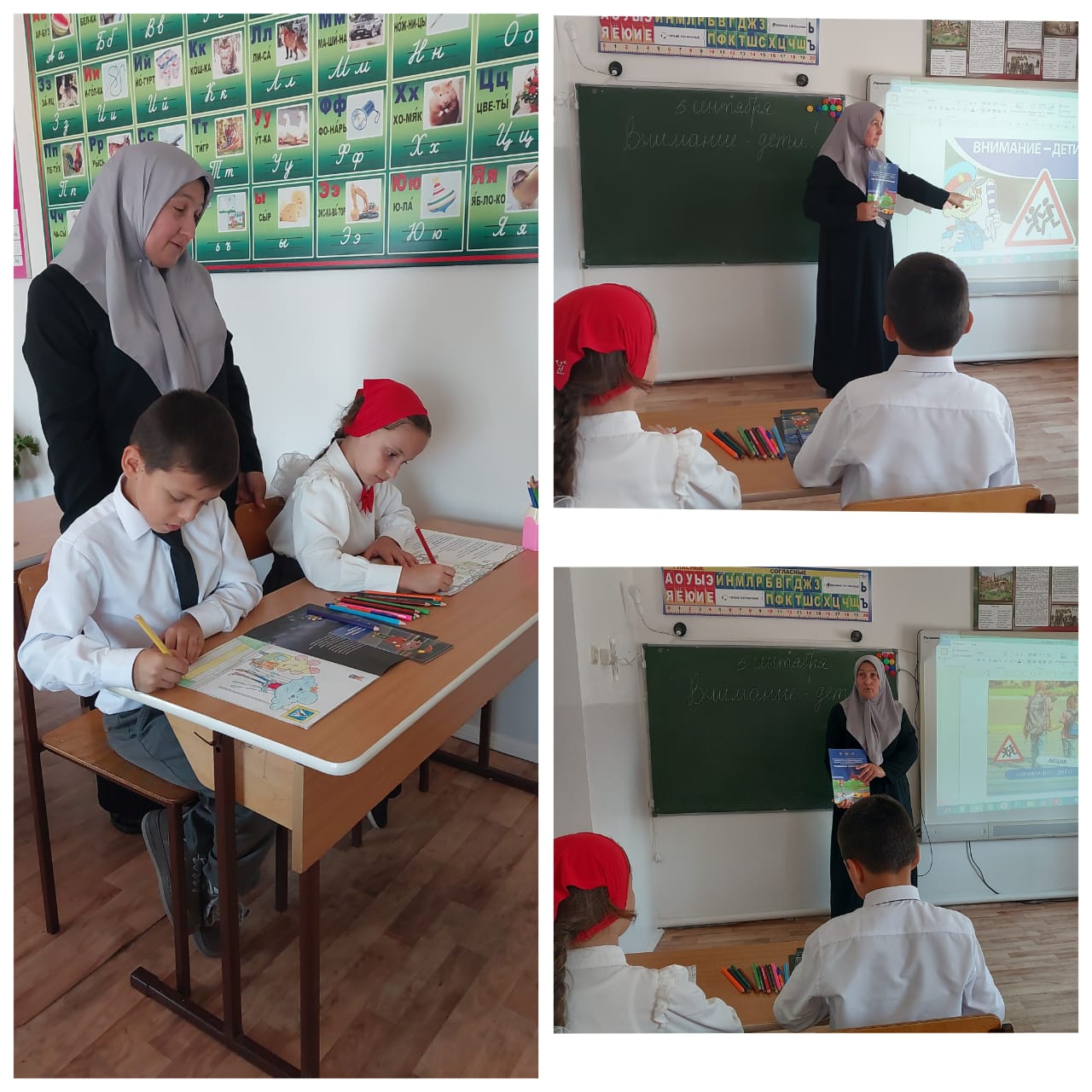 15.09.2025 в МБОУ "НОШ пос. Набережный "Учитель начальных классов Решиева Зульфия Зайндиевна провела урок на тему " О важности соблюдения ПДД"