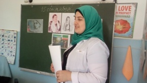 В нашей школе прошло мероприятие, посвященное Дню чеченской женщины. Дети читали стихи о маме и исполнили песни «Солнечный круг», «Мама». Так же провели беседу на тему « Наши семейные традиции».