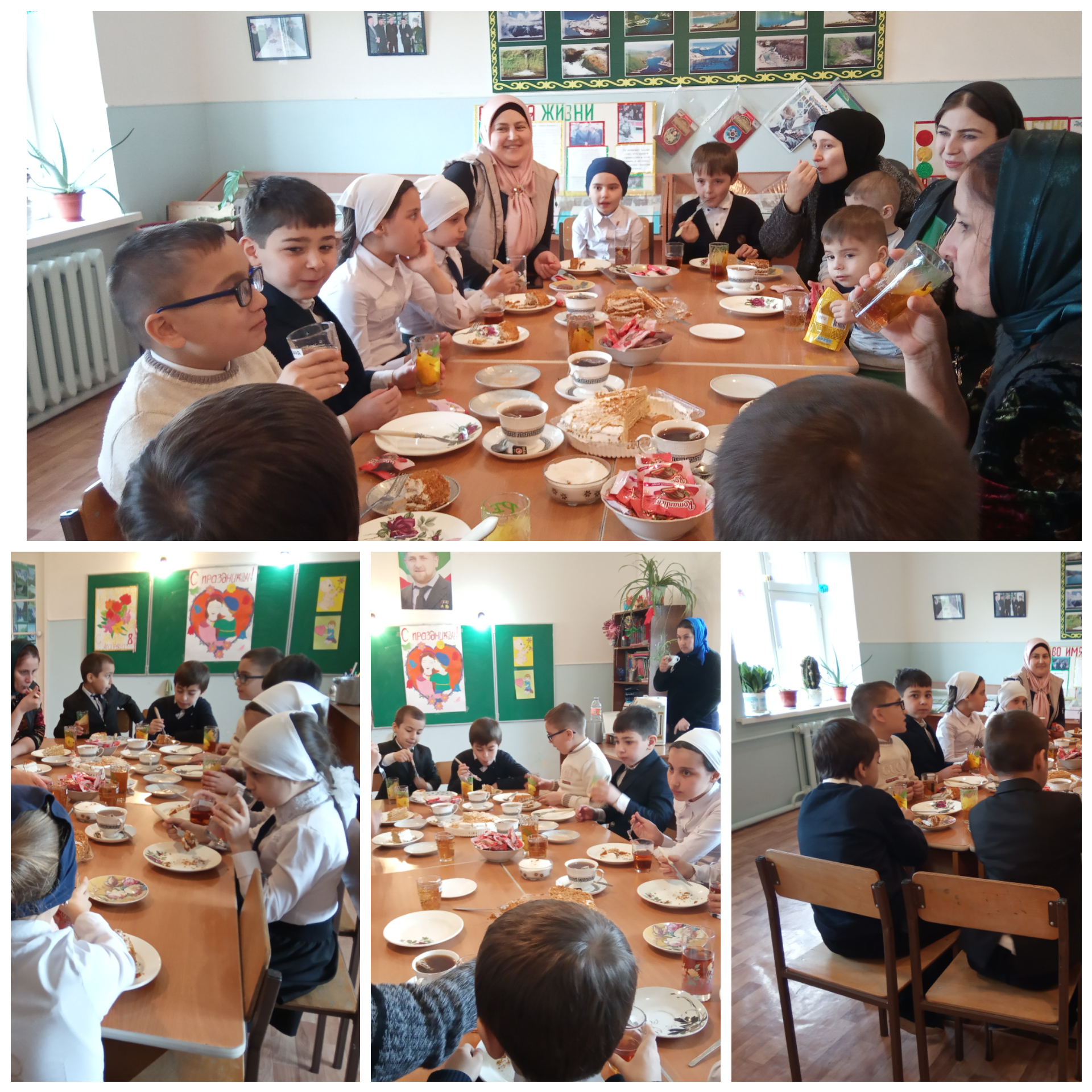 08.03.201907.03.2019г. Международный женский день 8 Марта. В нашей школе прошли мероприятия, посвященные Женскому дню 8 Марта. Были приглашены родители обучающихся - Мамы.Силами учащихся был организован праздничный концерт и подарки-поделки, изготовленные детьми. Также под руководством председателя ПК Даудовой Эльвиры Руслановны было организовано чаепитие.